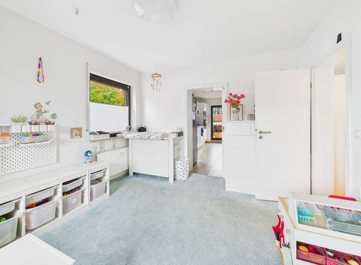 Einkaufszentren und Geschäfte sind ebenfalls nur kurze Wege entfernt, sodass Sie alle Annehmlichkeiten des täglichen Lebens bequem zu Fuß oder mit dem Auto erreichen können. Diese Lage vereint Komfort, praktische Erreichbarkeit und eine ruhige Wohnatmosphäre.