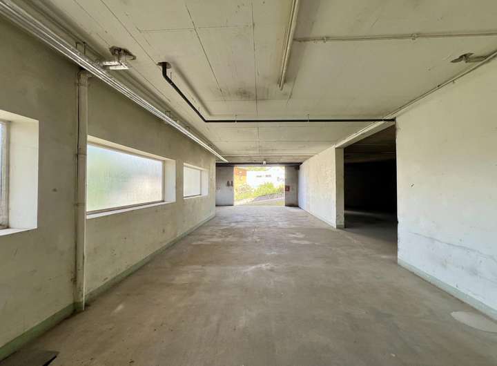 Im Untergeschoss stehen insgesamt rund 260 m² Nutzfläche zur Verfügung. Im oberen Kellergeschoss befindet sich eine ca. 130 m² große Einheit mit seitlichem Tor, die sich hervorragend als Werkstatt, Lager oder Depot nutzen lässt. Das darunterliegende Geschoss verfügt ebenfalls über etwa 130 m² und ist mit drei großen Toren ausgestattet. Somit bietet es ideale Voraussetzungen für die Unterbringung von Fahrzeugen, Maschinen oder Waren. Teilflächen im Untergeschoss sind aktuell vermietet. Beide Ebenen sind flexibel nutzbar und eignen sich für Handwerk, Handel, Logistik oder als Abstell- und Arbeitsräume.