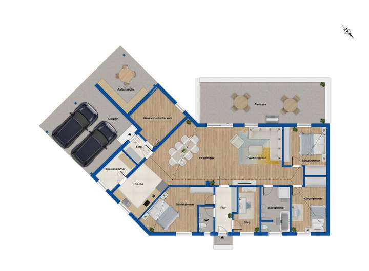 Dieses moderne Einfamilienhaus bietet durchdachtes Wohnen auf einer Ebene, eine hochwertige Ausstattung und eine Wohlfühlatmosphäre, die jeden Tag zu etwas Besonderem macht.