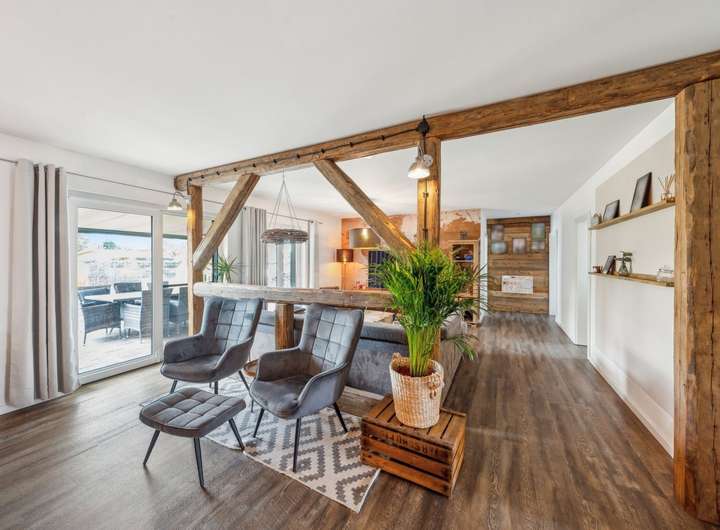 Dieses ca. im Jahr 2018 errichtete Einfamilienhaus überzeugt durch seine moderne Architektur, stilvolle Ausstattung und den charmanten Landhausstil, der Gemütlichkeit und Eleganz perfekt miteinander verbindet. Auf einer Ebene bietet das Haus ca. 139 m² Wohnfläche und damit ein ideales Zuhause für Familien, Paare oder Ruhesuchende, die modernen Wohnkomfort in naturnaher Umgebung schätzen.