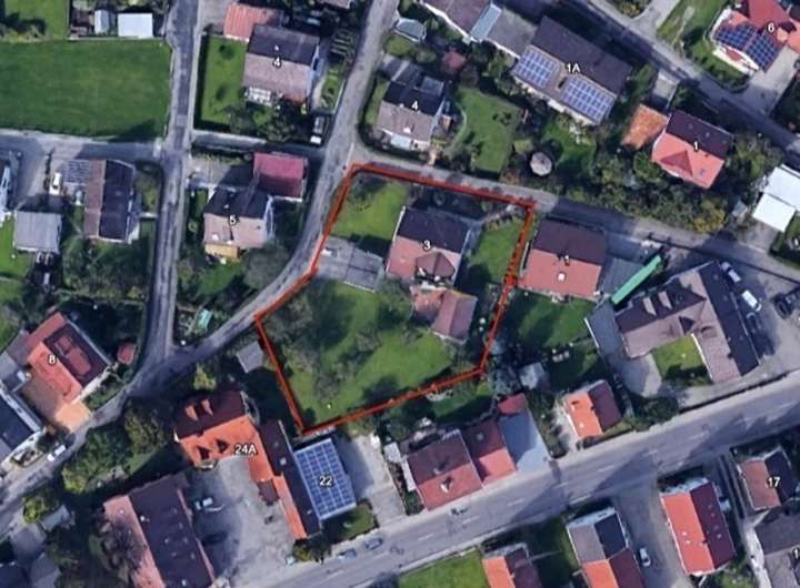 Das Grundstück umfasst eine Gesamtfläche von ca. 1.478 m² und befindet sich in einer ruhig gelegenen Wohngegend in Strassberg/Bobingen.