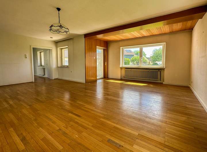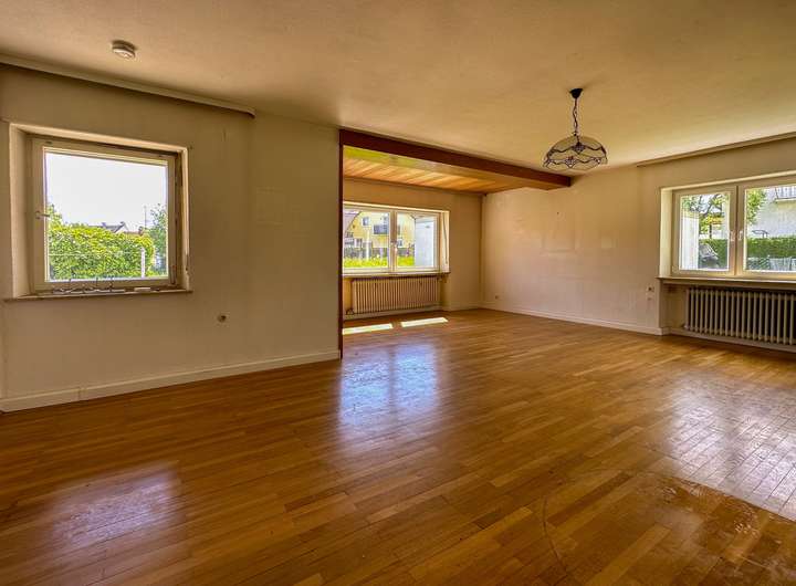 Auf dem Grundstück befindet sich ein freistehendes Zweifamilienhaus, das im Jahr 1975 erbaut wurde. Das Gebäude ist sanierungsbedürftig, bietet aber durch seine solide Bausubstanz viele Möglichkeiten zur Sanierung und Modernisierung. Alternativ kann das Gebäude abgerissen werden, um Platz für einen Neubau zu schaffen.