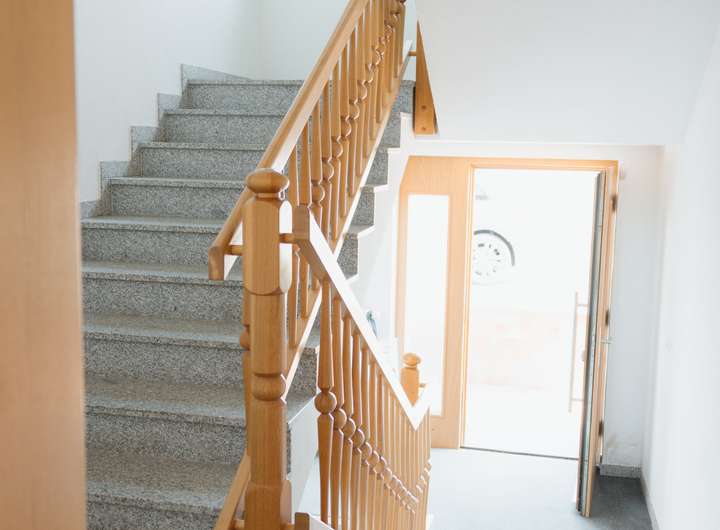 So weisen die Holzbalkon- bzw. Terrassengeländer sowie vor allem auch die Holzfenster der Wetterseite teils Witterungsschäden auf und müssen in Teilen oder gesamtheitlich erneuert bzw. aufgearbeitet werden. Auch gibt es im Bereich der Objektzufahrt aufgrund des Grenzabstands derzeit Klärungsbedarf, um auch zukünftig die Durchfahrtsmöglichkeit für PKWs in den hinteren Bereich des Grundstücks zu gewährleisten. Zusammen mit den Verkäufern wurden hierzu mögliche Lösungen erarbeitet, welche mit einem potenziellen Käufer vor Kauf entsprechend rechtssicher abgestimmt werden. Ich habe diesen Umständen bei der Kaufpreisfindung attestiert.