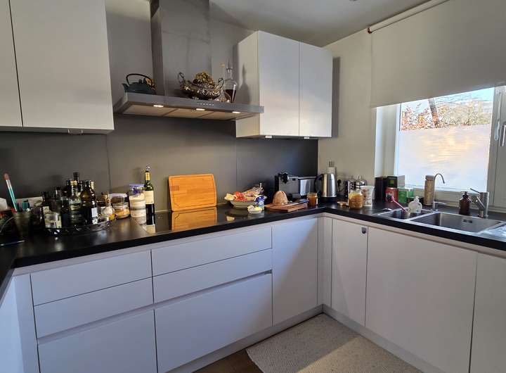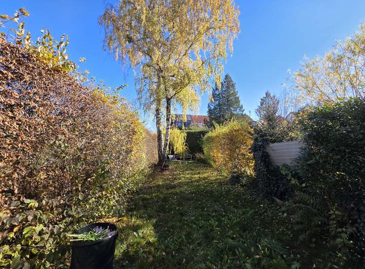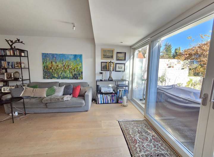 Vom Wohnbereich aus gelangt man direkt auf die grosszügige Terrasse und in den liebevoll angelegten Garten, in dem ein alter Birkenbaum für eine angenehme Atmosphäre sorgt.
