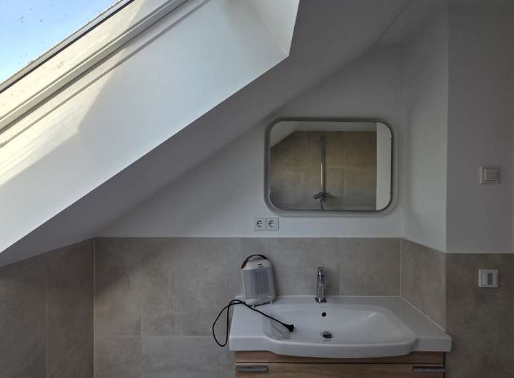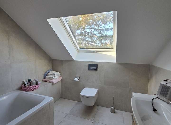 Das Dachgeschoss bietet ein Zimmer mit Gaube, ein weiteres Badezimmer sowie einen Abstellraum mit Küchenanschluss.