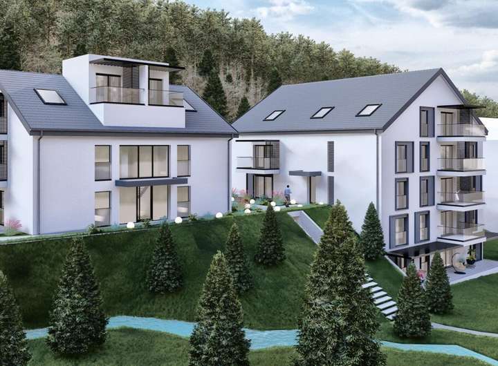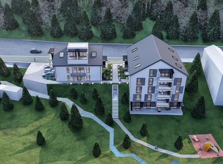 Gemäß dem vorliegenden genehmigten Bauvorbescheid sollen zwei Mehrfamilienhäuser mit einer gesamten Grundfläche von 505 m² (GRZ 0,23) entstehen. Vorgesehen sind zudem 4 Außenstellplätze sowie 14 Stellplätze in der Tiefgarage. Die geplanten Gebäude fügen sich architektonisch harmonisch in die bestehende Umgebungsbebauung ein.