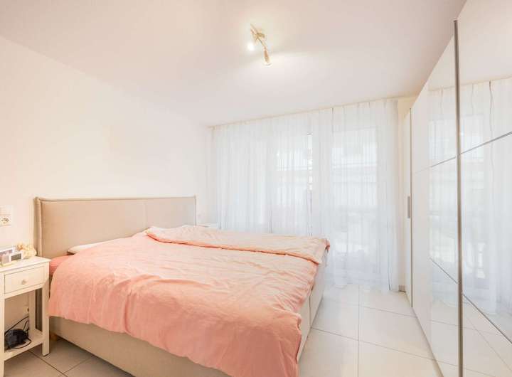 Das ruhig gelegene Schlafzimmer bietet direkten Zugang zur Terrasse. Ein idealer Ort, um den Tag mit einem Kaffee an der frischen Luft zu beginnen oder ihn entspannt ausklingen zu lassen.