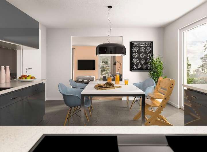 Unser Bungalow 131 hat es in sich – zwei Kinderzimmer, zwei Bäder, Schlafzimmer und Gästezimmer – viel Wohnfläche und clever nutzbarer Stauraum für die ganze Familie. Frühstücken Sie in der großen Wohnküche mit ihren Lieben und planen gemeinsam den Tag. Das traumhafte Wohnzimmer mit seinen großen Fenstern ist der perfekte Ort zum Entspannen, bietet freien Blick in Ihren Garten und mit wenigen Schritten sind Sie auf Ihrer Terrasse im Grünen. Dank bodentiefer Fenster sind die Wohnräume lichtdurchflutet und geben ein besonderes Wohngefühl. Das geräumige Schlafzimmer rundet das Raumangebot ab und machen Ihr Traumhaus zum Begleiter in allen Lebensphasen. Ihr Badezimmer gestalten Sie als Ihre ganz persönliche Wohlfühloase. Das Gäste-WC bietet Platz genug für eine Dusche und entspannt Ihr Zusammenleben.