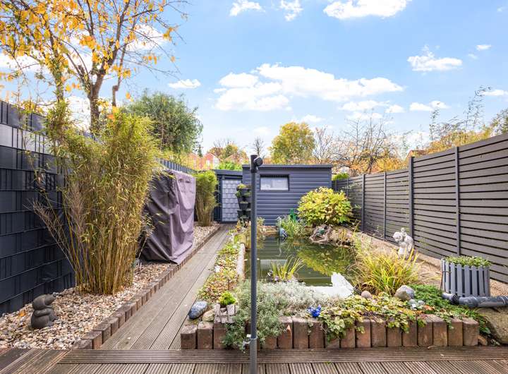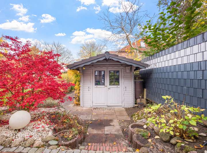 Abgerundet wird dieses Angebot durch einen Carport, einen Fahrrad- und Geräteschuppen sowie einem Gartenhaus.