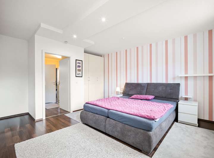 Die zwei großen, äußerst hellen Zimmer sind gut geschnitten und überzeugen durch volle Deckenhöhe von 2,50 Meter ohne Schrägen. Vom Flur aus gelangen Sie über eine Monarchtreppe auf den Spitzboden, der zusätzlichen Stauraum bietet.