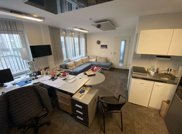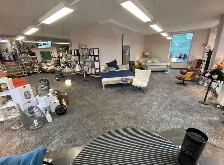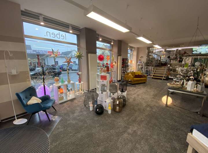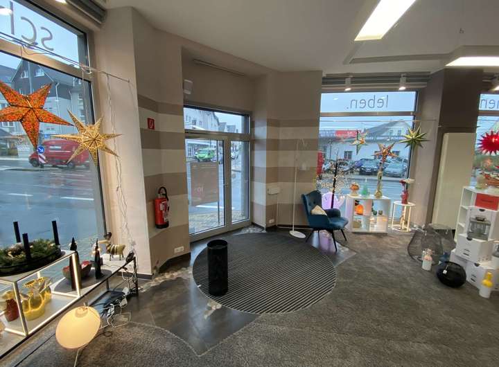Im Erdgeschoss des Wohn- und Geschäftshauses erwartet Sie ein attraktives Ladenlokal mit einer großen Ausstellungsfläche, die sich über zwei Ebenen erstreckt. Die untere Ebene präsentiert sich offen und weitläufig, mit einer modernen Raumstruktur sowie zahlreichen bodentiefen und deckenhohen Schaufensterflächen, die ein hohes Maß an Transparenz und Helligkeit schaffen. Diese Flächen bieten ideale Bedingungen für eine ansprechende Warenpräsentation oder eine repräsentative Dienstleistungsfläche. Auf der oberen Ebene befinden sich abgetrennte Räume, die sich alternativ zur Ausstellungsfläche hervorragend als Büro- oder Beratungsbereiche nutzen lassen. Ein separater Nebeneingang führt direkt auf das angrenzende Parkdeck, das mehrere Kundenstellplätze bereithält und somit eine hervorragende Erreichbarkeit garantiert.