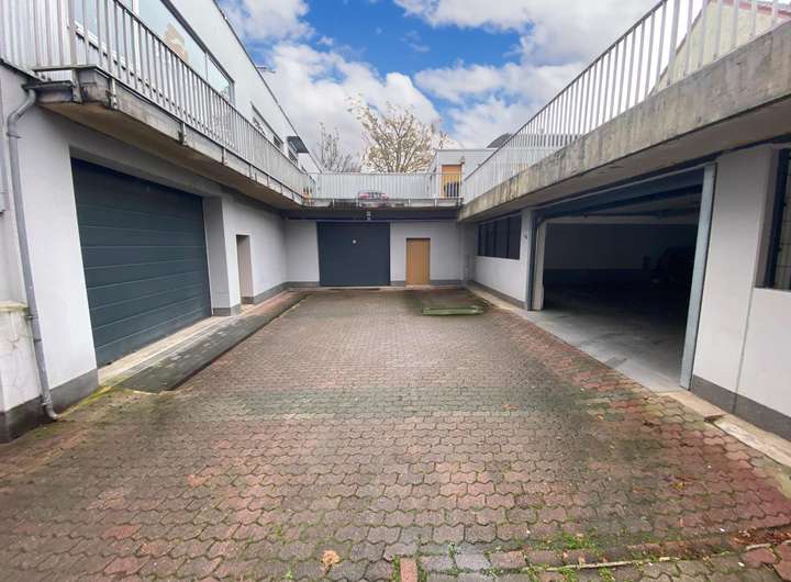 Über den Innenhof des Immobilienkomplexes sind in den beiden Untergeschossen mehrere gewerbliche Lagerbereiche zu erreichen. Zunächst befindet sich auf der linken Seite der hinabführenden Rampe ein großflächiger, befahrbarer Lagerraum, der vom Mieter des Ladenlokals genutzt wird. Geradeaus schließt sich ein weiterer Lagerraum an, der an einen externen Handwerksbetrieb vermietet ist. Auf der rechten Seite der Rampe erfolgt hingegen die Zufahrt in die hauseigene Tiefgarage, in der acht Stellplätze für Personenkraftwagen zur Verfügung stehen.