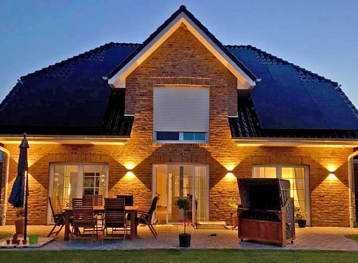 - Eine Photovoltaik-Anlage auf dem Dach dient zur Eigennutzung und Einspeisung.