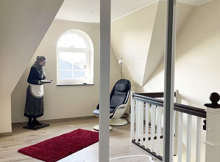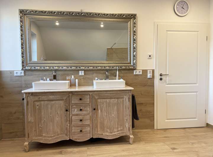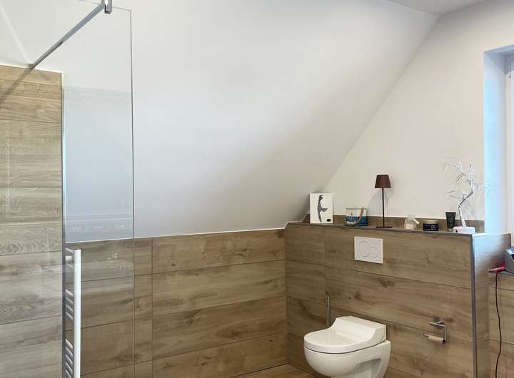 - Beide Badezimmer sind bereits altersgerecht konzipiert, die Dusche im Erdgeschoss lässt sich als römisches Dampfbad nutzen.