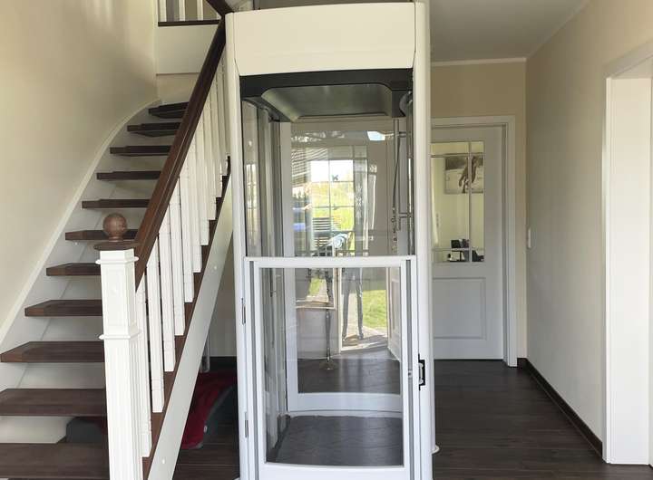 - ein Fahrstuhl, der bequem auf Knopfdruck vom Erdgeschoss ins Obergeschoss führt!