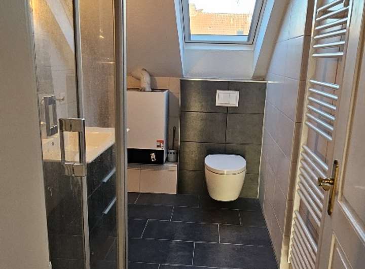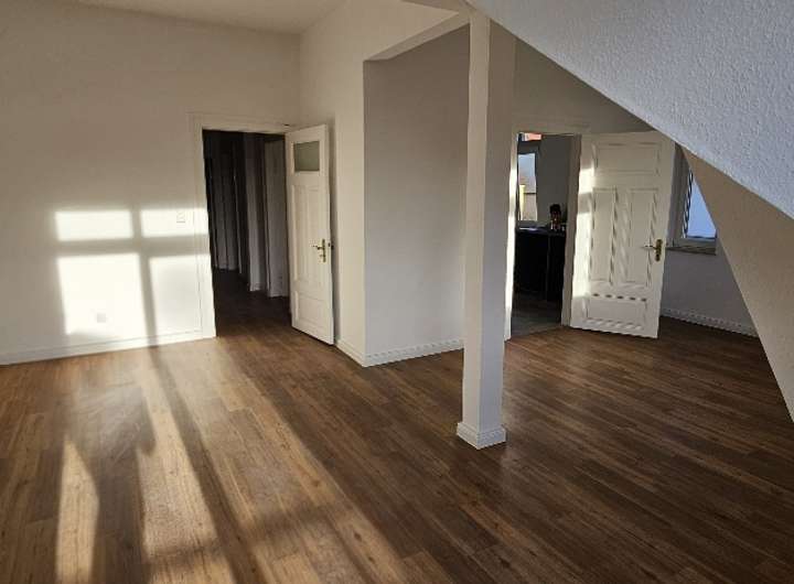 Die hiesige DG-Wohnung mit ca. 110 qm verfügt über insgesamt 4 Zimmer, Bad mit Dusche, Gäste-WC, Wohnküche mit Einbauküche, Südterrasse mit einer Fläche von ca. 110 qm und einer internen Treppe zum unausgebauten, trockenen Spitzboden (weitere ca. 60 qm Nebenfläche - mitvermietet) - als Lager und Hobbyraum nutzbar.