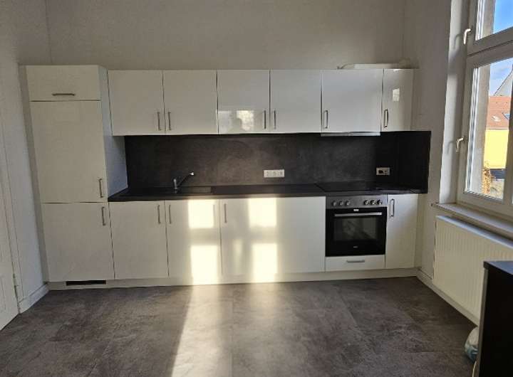 Links des Wohnungsflurs befindet sich dan über einen weiteren Zwischenflur verbunden rechts und links zwei schlafzimmer und in der Mitet das Badezimmer mit Duschbad. Platz für Waschmaschine und Trockner ist in einem Schrankelement in der Wohnküche. Die Wohnküche ist mit einer kompletten, modernen Einbauküche ausgestattet.