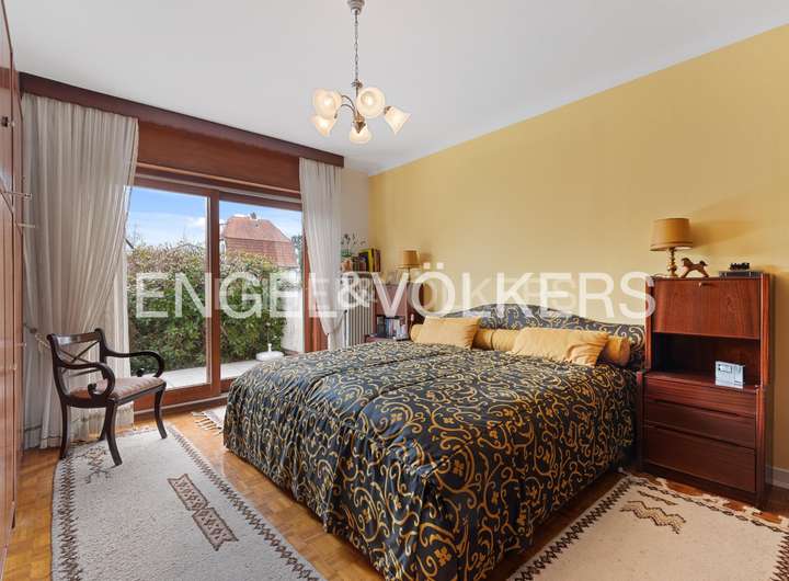 Im Erdgeschoss erwarten Sie drei Schlafzimmer, von denen aus zwei direkten Zugang auf die sonnige Südterrasse bieten. Das dritte Schlafzimmer diente Ursprünglich als Küche und verfügt somit, bei Bedarf, über alle nötigen Anschlüsse. Zudem gibt es einen großzügiger Wohn- und Essbereich, der durch seine großen Fensterfronten mit Blick in den Garten sofort ein angenehmes Wohngefühl vermittelt. Von hier aus führt eine Treppe hinunter ins Gartengeschoss, das durch die leichte Hanglage ebenfalls einen ebenerdigen Zugang zum Garten bietet. Dort befindet sich ein weiteres, großzügiges Esszimmer mit angrenzender Küche. Ein gemütlicher, etwas zurückgezogener, Bereich der sich perfekt für geselliges Beisammensein oder Grillabende im Freien eignet.