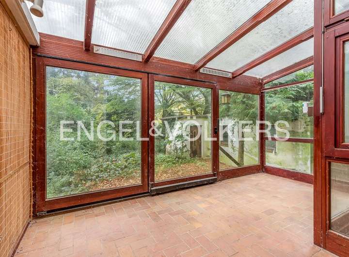 Im Erdgeschoss befinden sich ein repräsentatives Esszimmer und ein Wohnbereich mit Zugang zu einem der beiden Wintergärten, ein Arbeitszimmer, eine Küche mit Vorratsraum sowie ein Gäste-WC. Die oberen Etagen verfügen über mehrere Schlafzimmer, Bäder sowie die Option, eine zusätzliche Küche einzurichten, was flexible Nutzungsmöglichkeiten eröffnet. Ein Balkon und die zwei Wintergärten erweitern den Wohnraum ins Freie und schaffen schöne Rückzugsorte.