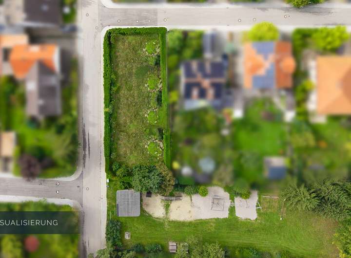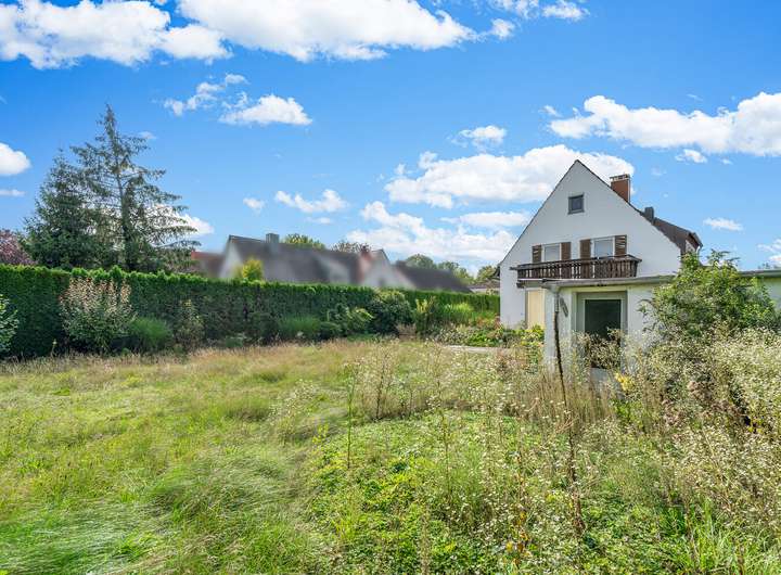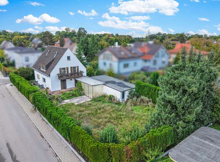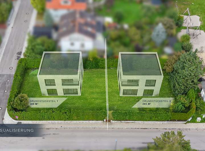 Zum Verkauf steht ein optimal nach Süden und Westen ausgerichtetes Grundstück mit einer gesamten Grundstücksfläche von 770 m². Aufgrund des vorteilhaften Baufensters gemäß Bebauungsplan 1A der Gemeinde Gräfelfing besteht die Möglichkeit, zwei schöne Einfamilienhäuser mit einer Wohnfläche von jeweils ca. 140 m² und einem Grundstücksanteil von jeweils ca. 385 m² zu errichten. Verkauft wird das gesamte Grundstück somit werden zwei Kaufinteressenten für den jeweiligen ½ Grundstücksanteil gesucht. Dieses Inserat bezieht sich auf die Kaufoption eines 1/2 Anteil des oben genannten Grundstücks mit einer Fläche von 770 m². Dank der günstigen Lage mit zwei Zufahrtsstraßen und einem großzügigen Baufenster bietet das Grundstück vielfältige Bebauungs- und Nutzungsmöglichkeiten. Auf dem Grundstück befinden sich eine großzügige Doppelgarage sowie ein zweigeschossiges Bestandsgebäude in massiver Bauweise mit Vollunterkellerung. In Absprache mit einem Architekten bestehen vielfältige Nutzungsmöglichkeiten: