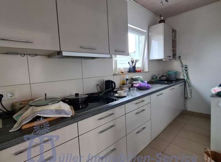 - Neuwertige Einbauküche, hellgrau, von 2013, mit Cerankochfeld und Backofen von Neff, Abzugshaube, Spülmaschine von Miele und große bodentiefe Kühl-Gefrierkombination verbleiben in der Wohnung.