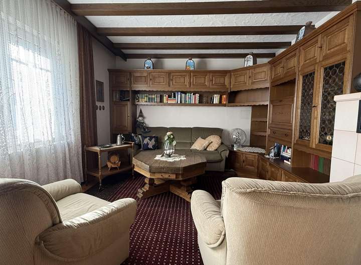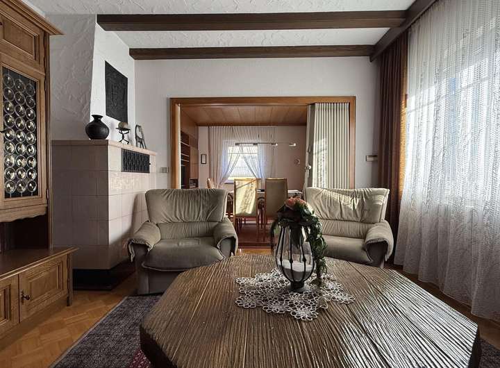 Im Erdgeschoss erwarten Sie ein einladendes Wohn- und Esszimmer, eine geräumige Küche als Mittelpunkt des Familienlebens, zwei individuell nutzbare Zimmer sowie einem Tageslichtbad mit Eckbadewanne. Das Dachgeschoss umfasst zwei gut dimensionierte Zimmer - die flexibel nutzbar sind, ein Raum - welcher früher als Küche genutzt wurde sowie ein separates WC. Das Dachgeschoss wird derzeit über Nachtspeicheröfen beheizt.