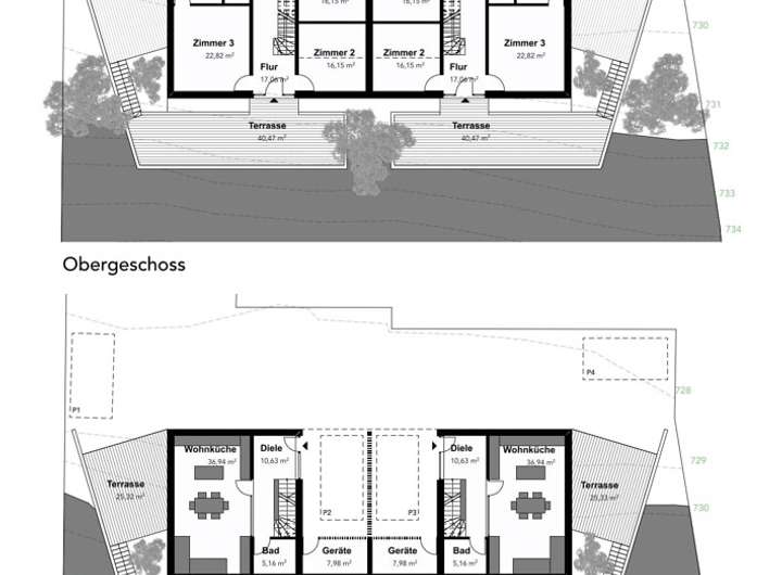 Alternativ können zwei Baupartner die Realisierung jeweils einer Doppelhaushälfte als ”Familienprojekt” in Betracht ziehen. Auch der Kauf einer real geteilten Parzelle für den Bau einer Doppelhaushälfte ist möglich.