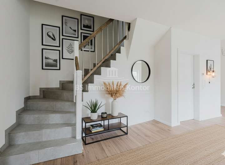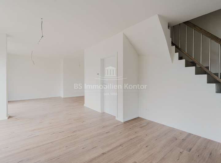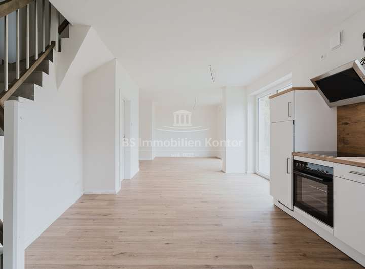 In zentraler Lage von Ihrhove wird derzeit diese moderne Doppelhaushälfte erstellt. Das Erdgeschoss erstreckt sich aus dem Flur/Diele, offenen Wohn-Koch-/Essbereich, Abstellraum und ein HWR. Im Obergeschoss befinden sich Flur, 2x Schlafzimmer, Vollbad und ein Abstellraum. Beheizt wird die Immobilie durch eine zentrale Wärmepumpe (Fußbodenheizung). Die Kunststofffenster sind 3-fach Vergl. und mit elektrisch bedienbaren Jalousien ausgestattet. Dank des hohen Energiestandards sind geringe Nebenkosten gewährleistet. Jede Wohneinheit verfügt über ein Carport und ein Abstellraum. Alle wichtigen Einrichtungen des täglichen Bedarfs wie Einkaufsmöglichkeiten, Schulen, Ärzte und Apotheken sind in wenigen Minuten erreichbar. Die verkehrsgünstige Lage ermöglicht zudem eine schnelle Anbindung an die umliegenden Städte und die Autobahn A-31 u. A-28. Eine Immobilie für Menschen, die sich Ihren Traum von komfortablem Wohnen in einer zentralen Lage verwirklichen wollen.