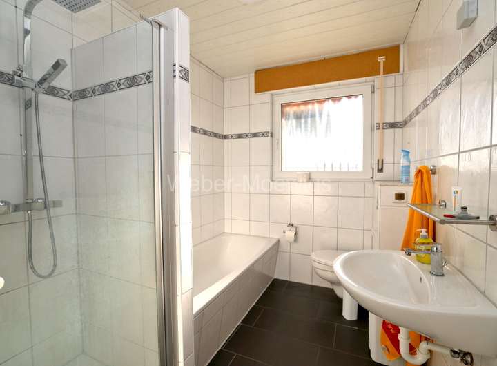- EG: 1 Tageslicht-Bad mit Wanne, Dusche, Waschbecken + WC
