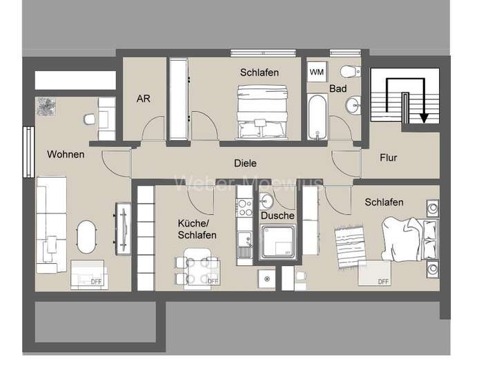 - OG: 1 Bad mit Dusche, Waschbecken + WC