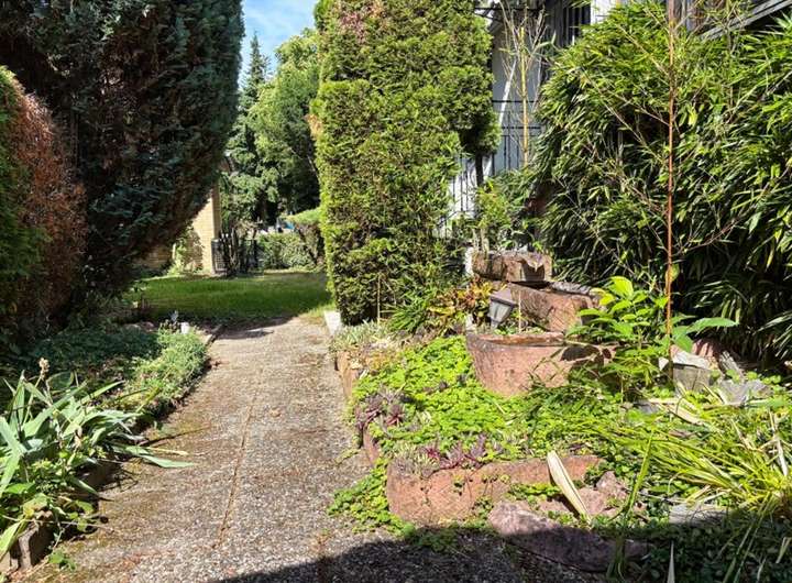 Das 634 m² große Grundstück öffnet den Blick ins Grüne. Hier weht die Frischluftschneise durch – ein unscheinbarer, aber spürbarer Luxus. Vögel statt Verkehrslärm, und im Sommer ein kühler Wind, der an heißen Tagen Gold wert ist.