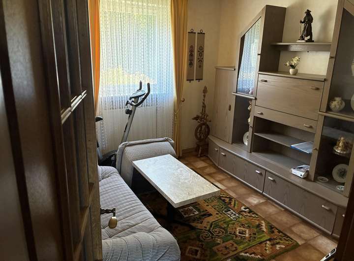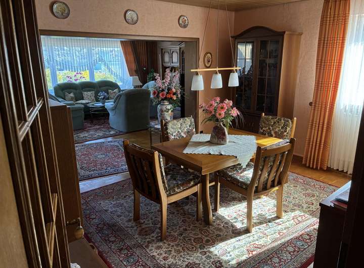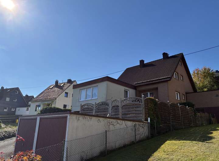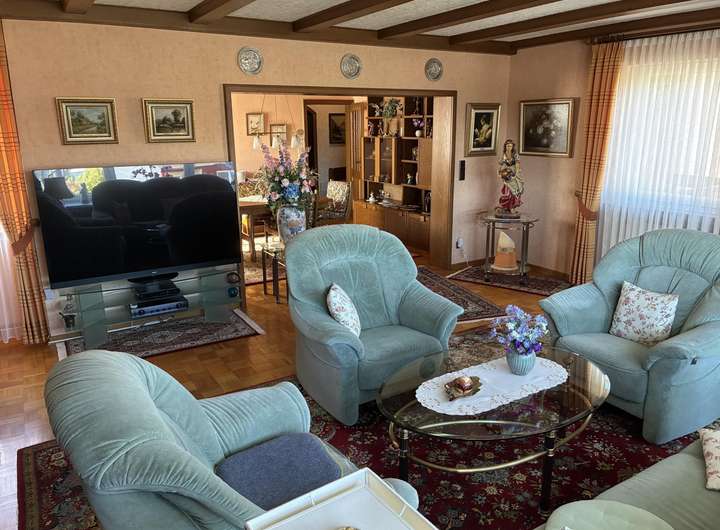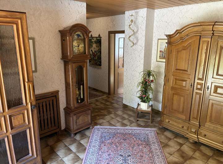 Das 1965 massiv erbaute Haus wurde 1972/ 73 mit einem Wohnzimmer- und Garagenanbau erweitert. 1968 erfolgte die Errichtung einer Doppelgarage am Grundstück wurde. Weitere zwei Garagen wurde nach dem Haushausanbau erreichtet. Die Immobilie verfügt über folgende Aufteilung: