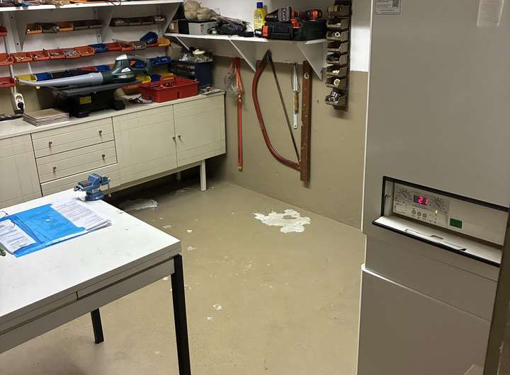 Kellergeschoss: Eingang von der Terrasse, Heizungskeller, Waschküche, alte Öltanks, 2 Kellerräume, 2 Garagen