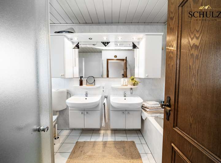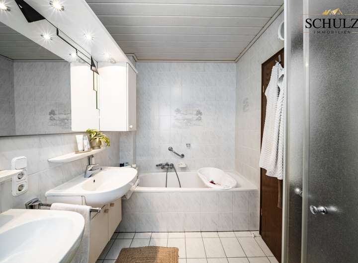 Im Erdgeschoss erwarten Sie ein helles und geräumiges Wohnzimmer, zwei flexibel nutzbare Schlafräume, das Tageslichtbad mit Badewanne, Dusche und 2 Waschbecken, sowie die im Mietpreis enthaltene Einbauküche in sehr gutem Zustand. Ein Hauswirtschaftsraum mit Waschmaschinenanschluss sorgt für zusätzlichen Komfort und praktische Nutzungsmöglichkeiten.