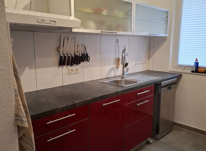 Die eingebaute Küche kann von dem Vormieter für 800,- € abgelöst werden. Elektrogeräte sind mitinbegriffen - außer der Kühlschrank. Es besteht noch ca. 1 Jahr Garantie.