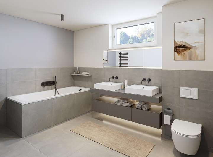 • Großformatige Fliesen 60 x 60 cm in Bädern