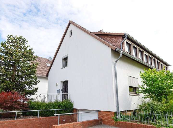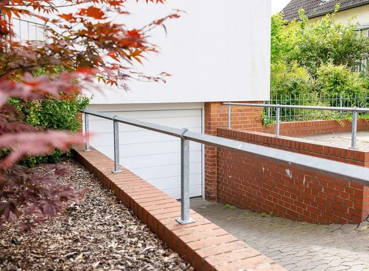 Zudem ist über den Keller ein direkter Zugang zur Garage vorhanden. Die Garage ist von der Straße aus über eine Einfahrt erreichbar. Darüber hinaus stehen zwei weitere Stellplätze auf der Einfahrt zur Verfügung.