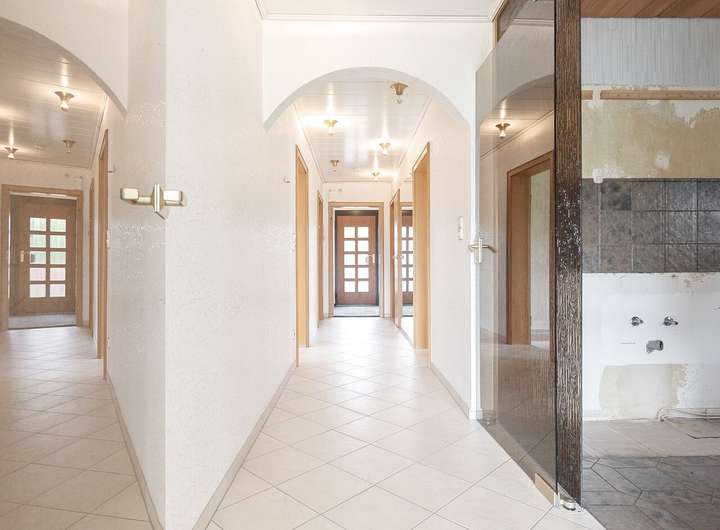 Das Gebäude ist sanierungsbedürftig, bietet aber eine solide Substanz und vielfältige Möglichkeiten zur individuellen Umgestaltung – auch hinsichtlich einer Anpassung des Grundrisses. Aktuell ist eine Ölheizung verbaut, ein Gasanschluss liegt jedoch bereits an. Ebenso besteht die Option, eine moderne Wärmepumpe – gegebenenfalls in Hybridform mit Gasbetrieb – zu installieren, was auch im Hinblick auf Förderprogramme interessant sein kann.