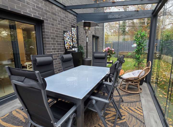 Zur Immobilie gehören eine große Terrasse mit 15 m² Wintergarten, sowie zwei praktische Geräteschuppen. Der gepflegte Garten bietet ausreichend Platz für Freizeit und Erholung.