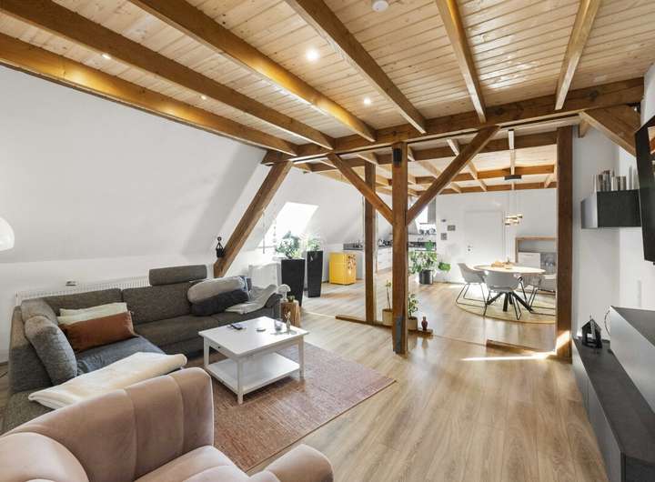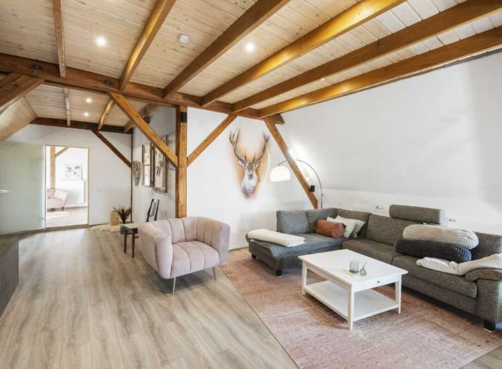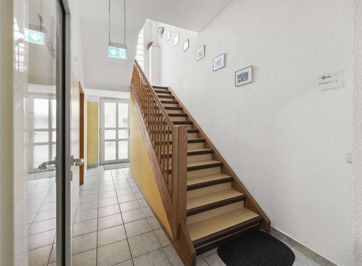 Im ersten Obergeschoss stehen fünf modern ausgestattete Fremdenzimmer zur Verfügung, die aktuell vermietet sind und sich in einem ausgezeichneten Zustand befinden. Zudem beherbergt diese Etage eine gepflegte Maisonette-Wohnung, die sich flexibel in neue Nutzungskonzepte integrieren lässt.