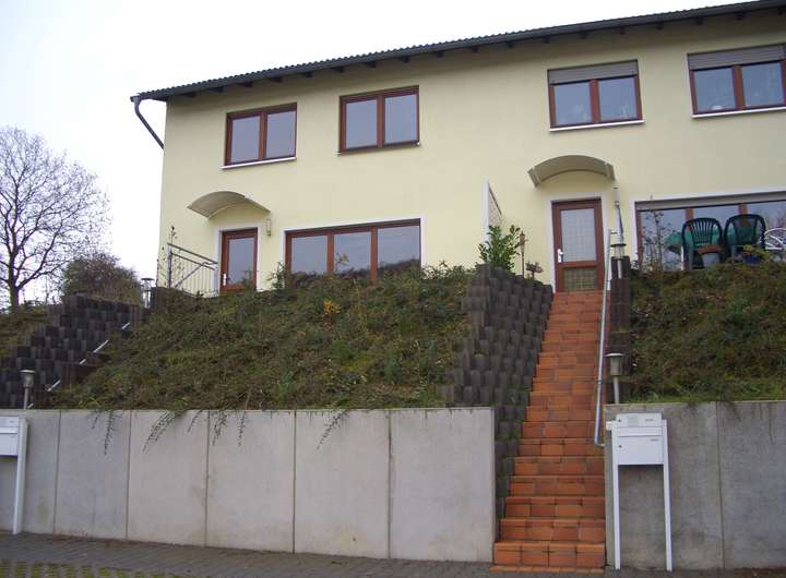 Das Haus besitzt einen kleinen Garten und sowie vor, als auch hinter dem Haus je eine Terrasse. Die Wohnung ist mit Laminat aus Buche ausgestattet. Das EG umfasst die Küche, 1 Wohn/Essbereich, 1 Badezimmer und 2 Hauswirtschafträume. Im 1.OG befinden sich 3 Schlafzimmer, 1 Badezimmer und eine Galerie.