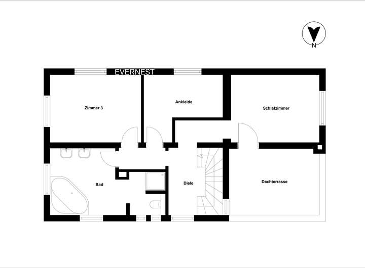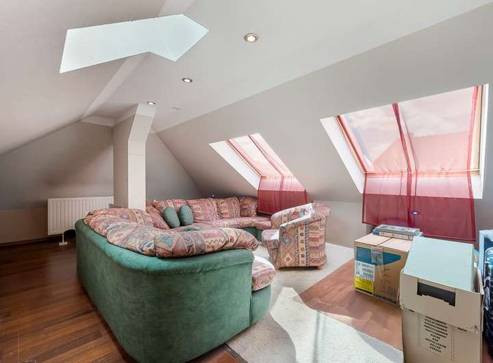 Im Dachgeschoss steht ein großzügiges Dachstudio zur Verfügung, das sich flexibel als Arbeits-, Gäste- oder Freizeitraum nutzen lässt.