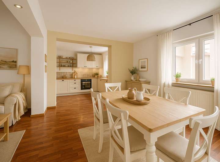 Darüber hinaus eröffnen sich vielseitige Nutzungsmöglichkeiten. Eine Umstrukturierung zu einem Zweifamilienhaus ist problemlos möglich, da die Leitungen bereits vorbereitet sind. Zusätzlich besteht die Option, das Grundstück zu teilen und auf der freiwerdenden Fläche ein weiteres Haus zu errichten – ein echtes Plus an Flexibilität für zukünftige Pläne. Abgerundet wird dieses attraktive Angebot durch eine Garage mit direktem Gartenzugang sowie drei zusätzliche Stellplätze.