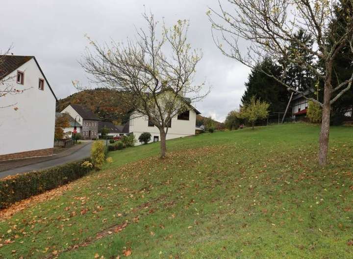 Das Grundstück hat leichte Hanglage und liegt dadurch schön oberhalb des Dorfes wodurch man einen großartigen Ausblick auf die „Dockweiler Vulkaneifel“ hat.