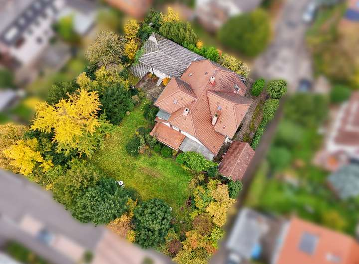 Der Zustand des Gebäudes ist vollständig sanierungsbedürftig, bietet jedoch ein enorm großes Potenzial zur stilvollen Wiederherstellung der historischen Substanz. Alternativ eröffnet das Grundstück durch seine Größe, Lage und baurechtliche Ausgangslage auch die Option eines Abrisses des Gebäudes und eines anschließenden Neubaus. Da kein Bebauungsplan existiert, richtet sich die mögliche Bebauung nach §34 BauGB – also nach Art und Maß der Umgebungsbebauung. Die Nachbarschaft ist geprägt von Einfamilienhäusern, Doppelhäusern, kleineren Mehrfamilienhäusern sowie auch kleingewerblichen Nutzungen. Somit könnte hier auch ein modernes Wohnkonzept, ein Mehrgenerationenprojekt oder eine Kombination aus Wohnen und Arbeiten realisiert werden. Eine Teilung des Grundstücks mit einer zusätzlichen Zufahrt über die Hölderlinstraße sind grundsätzlich auch möglich.