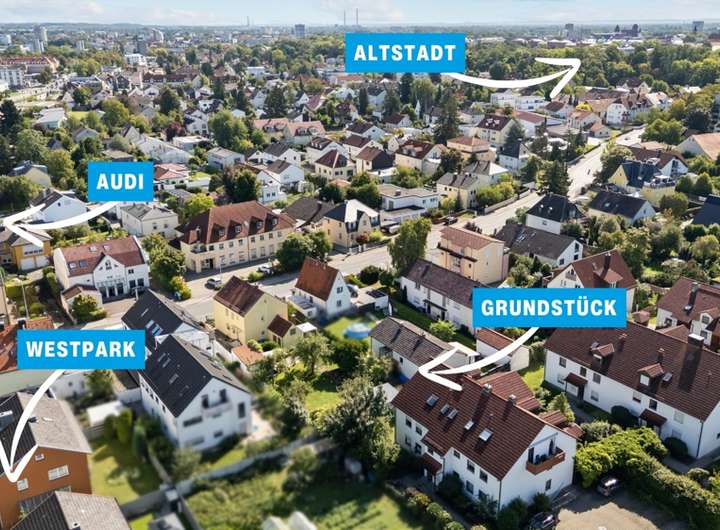 Das Grundstück befindet sich in der Gaimersheimer Straße 43 in Ingolstadt. Einem beliebten Wohnviertel von Ingolstadt mit hervorragender Infrastruktur. Die Lage zeichnet sich insbesondere durch die unmittelbare Nähe zum Westpark aus. Zwischen dem Westpark und der Wohnung befindet sich zudem der Piuspark mit kleinem See direkt um die Ecke. Alle Wege erschließen sich von hier innerhalb kürzester Zeit mit dem Bus, Fahrrad oder sogar fußläufig. Zu Fuß erreichen Sie z.B. innerhalb von nur wenigen Gehminuten eine Vielzahl von Einkaufsmöglichkeiten. Supermarkt, Drogerie, Gartencenter, Bäcker und vieles mehr an der Neuburgerstraße Ecke Permoserstraße. Nördlich der Wohnung befindet sich das Kaufland. Auch das Freizeitangebot Indoor wie Outdoor ist groß. Viele Sportvereine, der Baggersee und die City bieten Ihnen vielfältige Möglichkeiten!