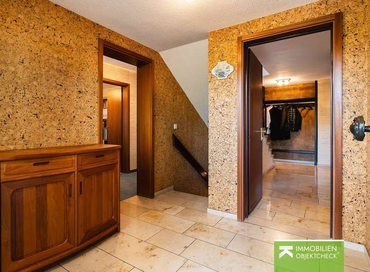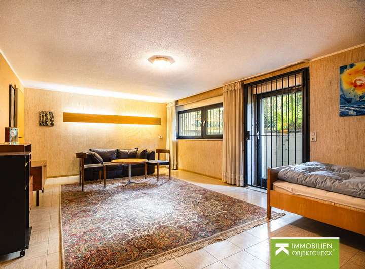 Das gesamte Gebäude ist großzügig gestaltet – mit zahlreichen Fenstern, die für reichlich Tageslicht sorgen. Es teilt sich in eine 5-Zimmer-Wohneinheit mit ca. 168 m² Wohnfläche (inkl. Terrasse), verteilt auf Erd- und Dachgeschoss, sowie eine 2-Zimmer-Einliegerwohnung mit ca. 52 m² Wohnfläche (inkl. Balkon). Eine Nutzung als klassisches Einfamilienhaus ist problemlos und komfortabel möglich. Zudem ist das Haus voll unterkellert und bietet ca. 93 m² Nutzfläche. Die Nutz- und Lagerflächen im Spitzboden (teilweise Kriechhöhe, teilweise Stehhöhe bis ca. 1,80 m) betragen rund 42 m². Zusammen mit den anrechenbaren Wohnflächen im Kellergeschoss (ca. 15 m²) ergibt sich eine beachtliche Wohn- und Nutzfläche von ca. 371 m². Die Nutzfläche der Garage beträgt zusätzliche ca. 16 m². Das gesamte Erd- und Dachgeschoss sowie Teilbereiche des Kellers werden über eine Fußbodenheizung beheizt.