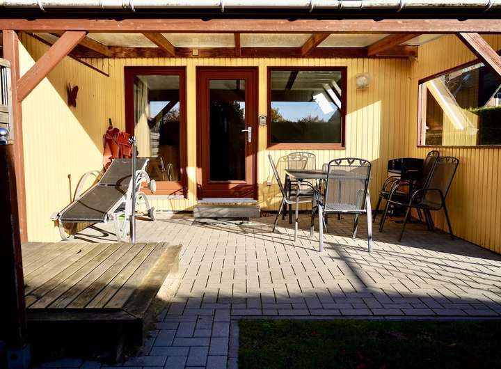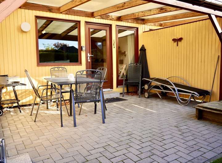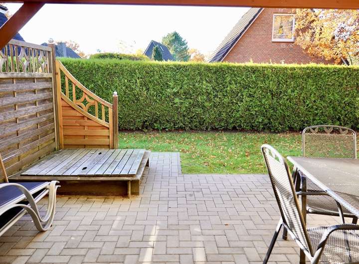 • Überdachte Terrassen für jede Haushälfte mit eigenem Gartenbereich