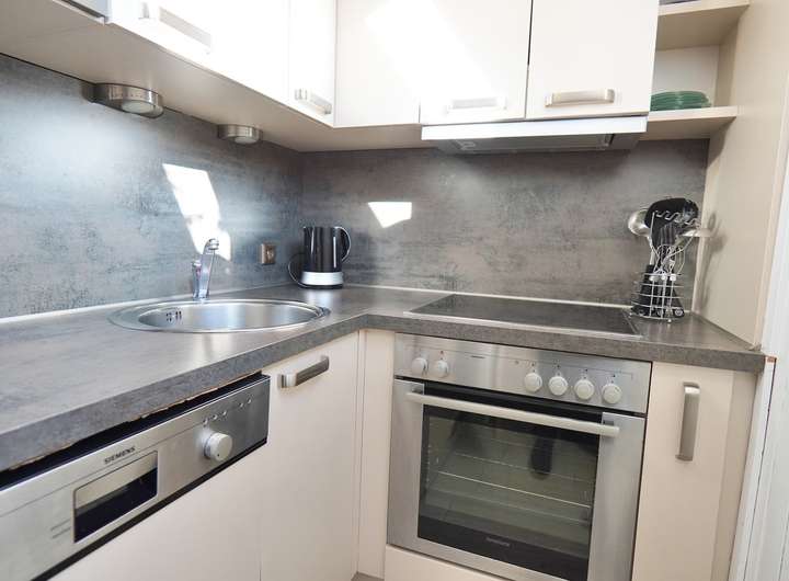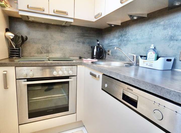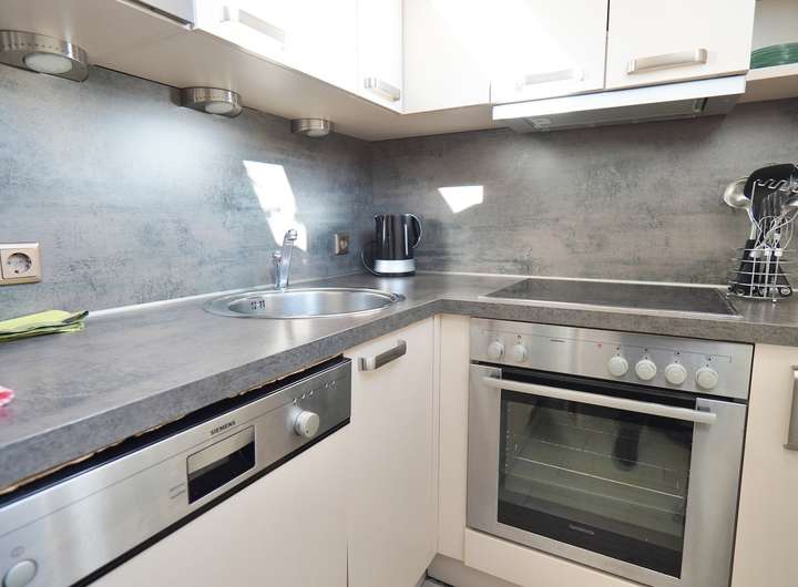 • Eine vollausgestattete Einbauküche mit Spülmaschine
