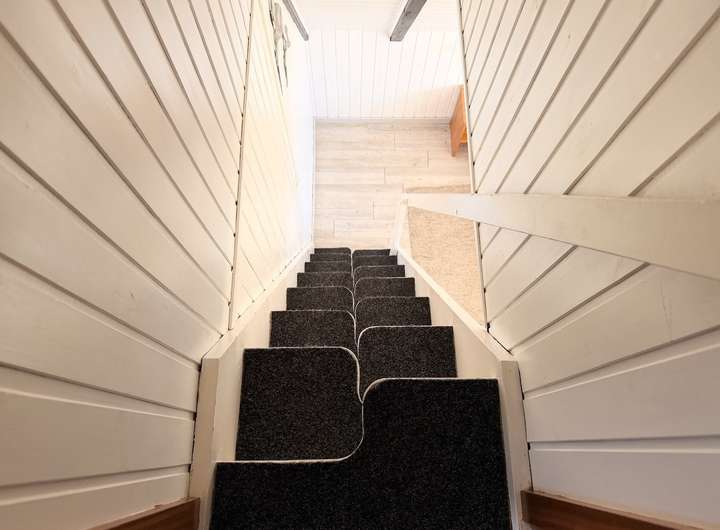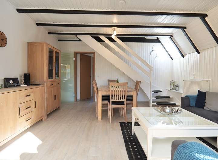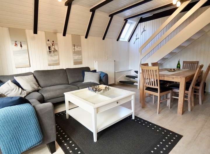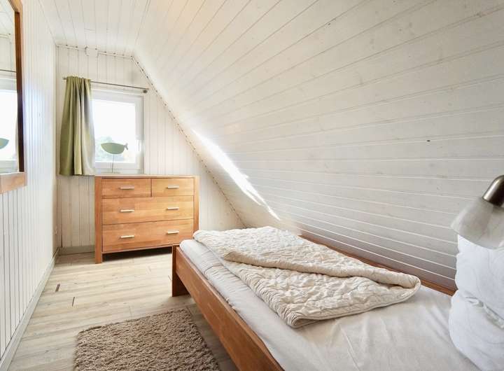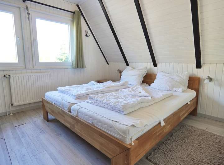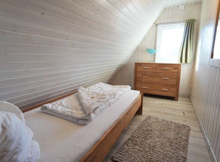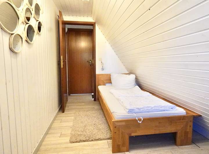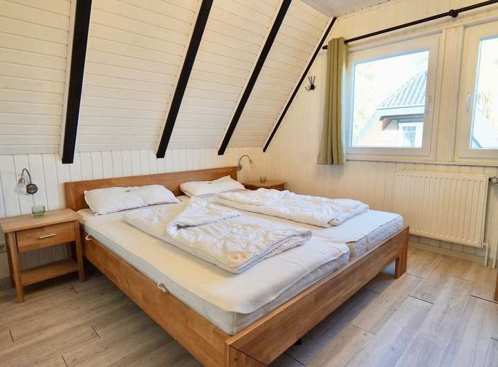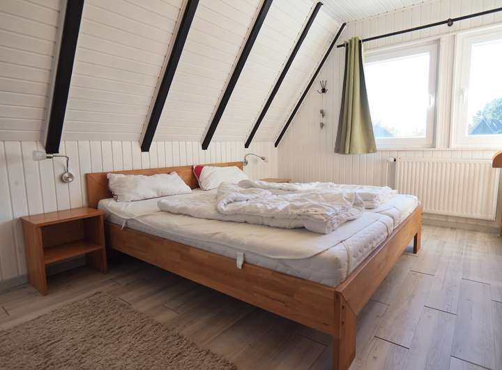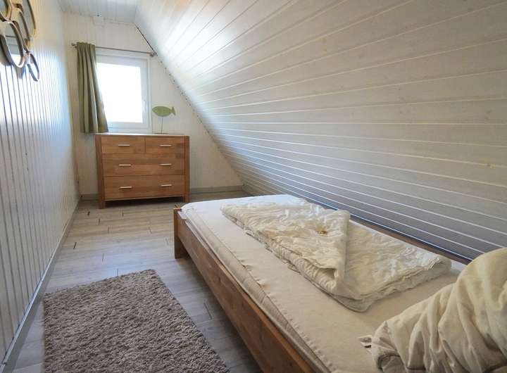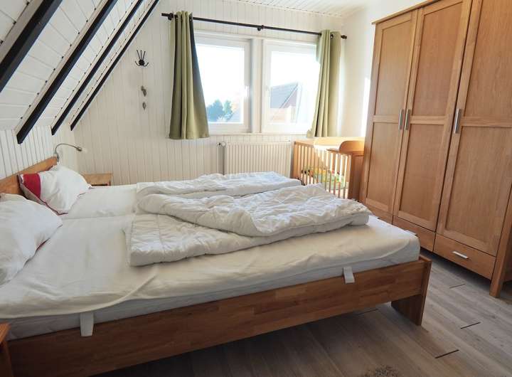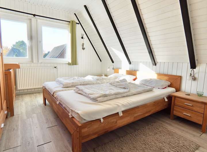 Im Obergeschoß stehen in jeder Haushälfte zwei gemütliche Schlafzimmer mit Doppelbetten zur Verfügung, der ausgebaute Spitzboden bietet zusätzlich zwei weitere Schlafzimmer mit Einzelbetten, ideal für Kinder. Insgesamt finden somit bis zu 12 Personen auf 2x6 Betten Platz, um ihren erholsamen Urlaub zu genießen.